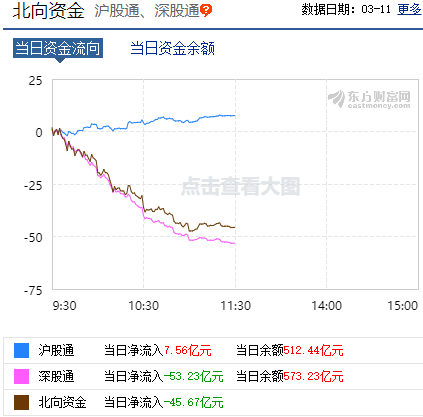 这导致北上资金避险情绪升温,早盘净流出45.64亿元,其中沪股通净流入7.56亿元,深股通净流出53.2亿元。