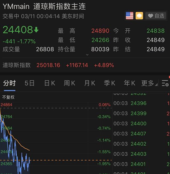 虽然隔夜美股大涨,但今日美股三大指数期货均大幅下跌,截至发稿,道琼斯指数期货跌1.77%,标普500、纳指期货跌约2%,这预示美股或将继续巨幅震荡。