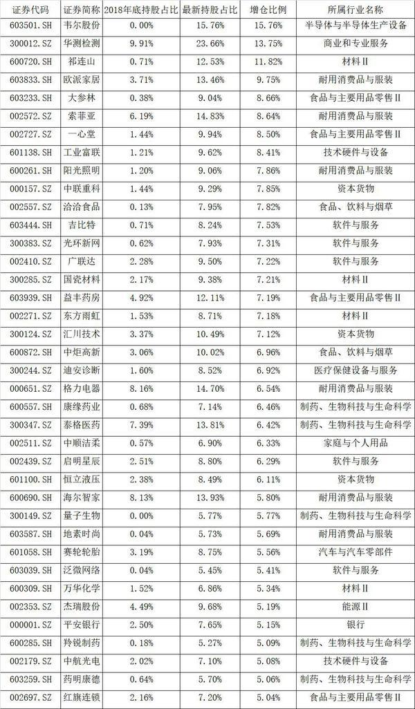 具体来看,韦尔股份增仓比例最为明显,最新持股比例为15.76%,全部为今年买入,去年北上资金并未持股。其次是华测检测、祁连山,持股比例分别增加13.75个百分点和11.82个百分点。其中,华测检测的最新持股比例达23.66%,接近外资持股比例红线28%。