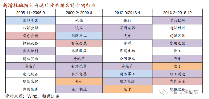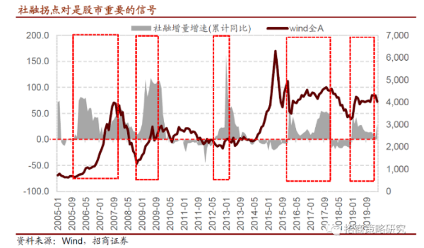 招商证券认为,新增社融增速始终扮演着一个关键角色,领先于上市公司企业盈利增速。社融拐点也成为市场重要的拐点信号,历史来看2005年8月,2008年11月,2012年9月,2016年1月,2019年1月都成为重要的拐点信号。