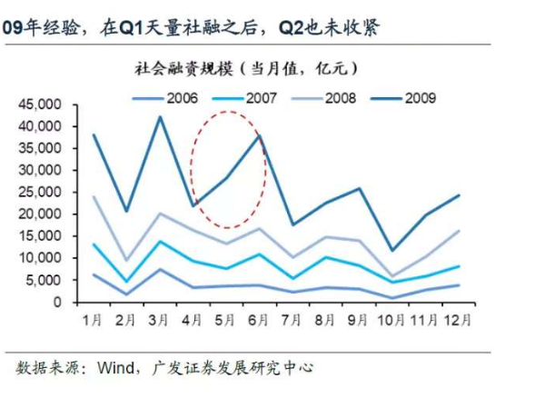 此外,参考09年经验,在Q1天量社融之后,Q2也未收紧,M2增速也在3月达到25%之后继续上行直至11月的30%。因此,无论从实际需求、央行表态还是历史经验来看,展望Q2的政策方向应仍为持续宽松。