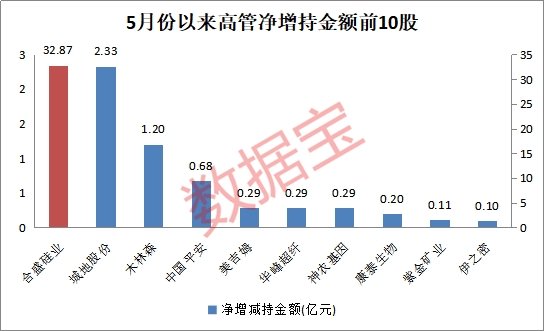 对近15个月的数据研究发现,高管增减持与市场涨跌存在明显负相关关系。沪指大幅下跌时,高管倾向增持;而沪指上涨时,高管倾向减持。如2018年10月,沪指下跌7.75%,高管当月净增持6.23亿元;2019年2月及3月,沪指分别上涨13.79%、5.09%,高管在这两个月净减持金额合计达到97.44亿元。10股高管净增持超千万元数据宝统计显示,5月份以来高管增减持的243股,共分布在26个申万一级行业,净增持行业共有8个。有色金属行业净增持金额居首,近33亿元;其次是建筑装饰行业,获高管净增持2.38亿元。另外,非银金融、农林牧渔、银行、公用事业等行业也获高管不同金额的净增持。相反,医药生物、轻工制造、机械设备、计算机4个行业,高管净减持金额均超2亿元。遭净减持股中,晨光文具、泰格医药、数知科技等4股净减持金额超亿元;此外,华宇软件、胜利精密、惠博普等9股超5000万元。