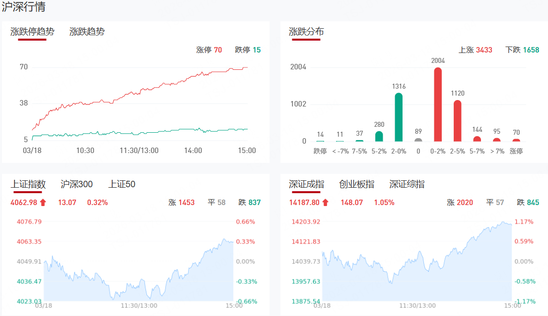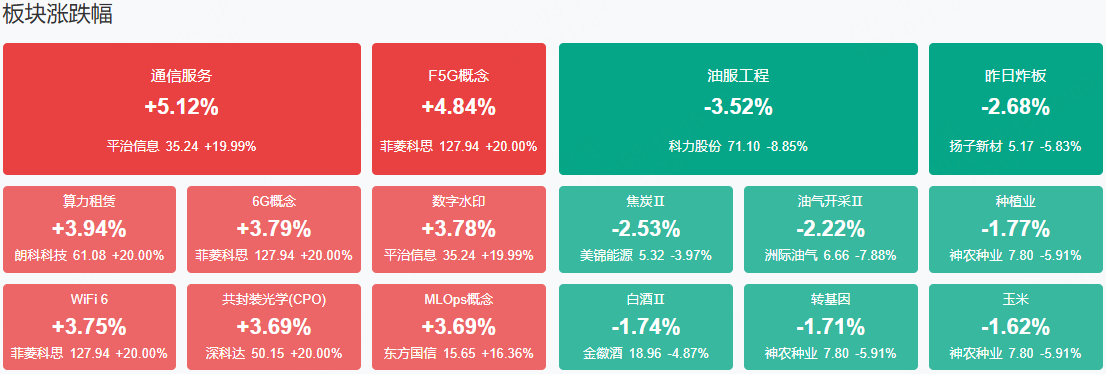 板块方面,算力产业链、算电协同、液冷服务器、存储芯片等板块表现活跃,油气、煤炭、白酒、农业等板块表现落后。截至收盘,沪指涨0.32%,深成指涨1.05%,创业板指涨2.02%。