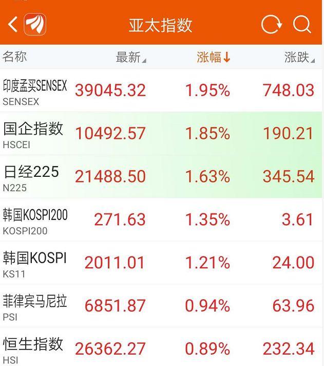 与此同时,今日亚太股市多数集体止跌回升,其中韩国综合指数、富时新加坡等指数均翻红。