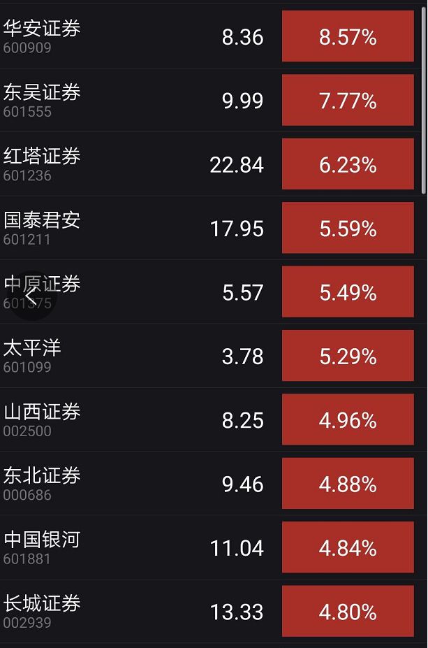 另一方面,“牛市旗手”券商股再度发力,华安证券涨8%以上,多只券商股涨幅超4%以上。