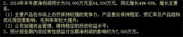 又比如,亿联网络也表示,预计2019年上半年公司净利润同比增幅范围在44%至56%。公司表示,业绩增长主要源于核心产品在市场上竞争力较强,销售价格稳定,以及受汇率及产品结构化等因素影响,毛利率有较大提升。