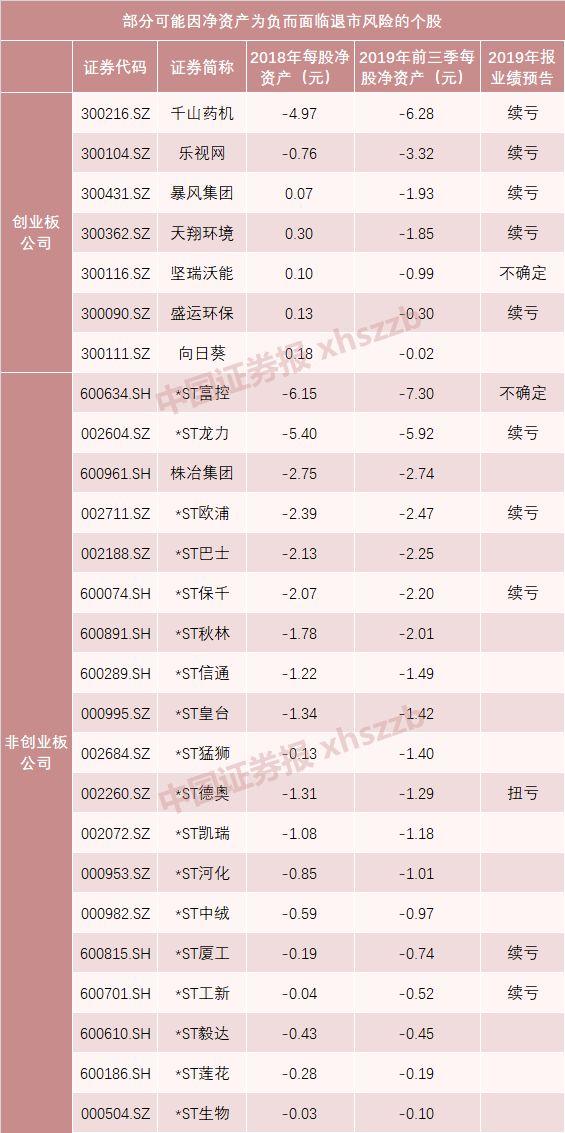 此外,需要警惕那些净资产可能为负的股票。目前,有26家公司可能因此面临退市风险。