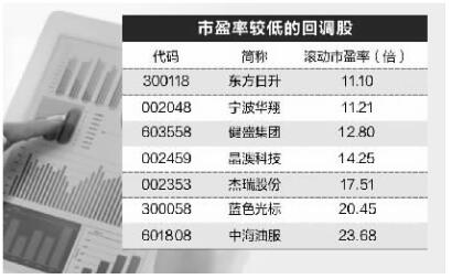 从回调幅度来看,业绩高增长股中道恩股份回调幅度最大,超过42%。中海油服、杰瑞股份2只个股最新价较年内高点下跌均超40%。滚动市盈率最低的股票是东方日升,不足12倍。另外,宁波华翔、健盛集团、晶澳科技等个股市盈率均不足15倍。