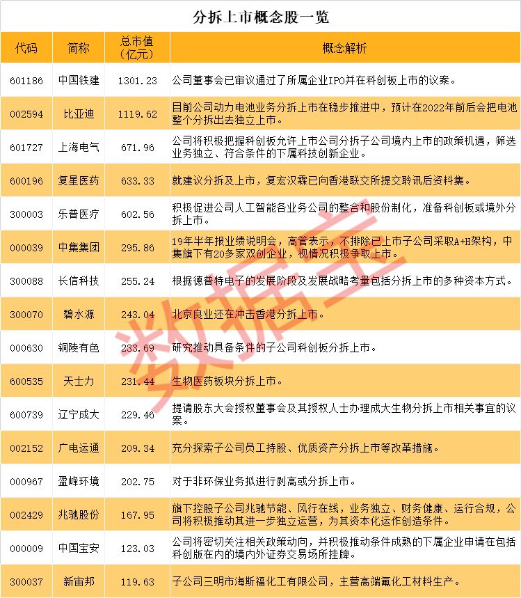 证券时报·数据宝粗略统计,当前已有33家上市公司公开表示正在推进分拆子公司A股上市。比如,比亚迪8月7日在互动平台回复投资者提问时称,目前公司动力电池业务分拆上市在稳步推进中,预计在2022年前后会把电池整个分拆出去独立上市。