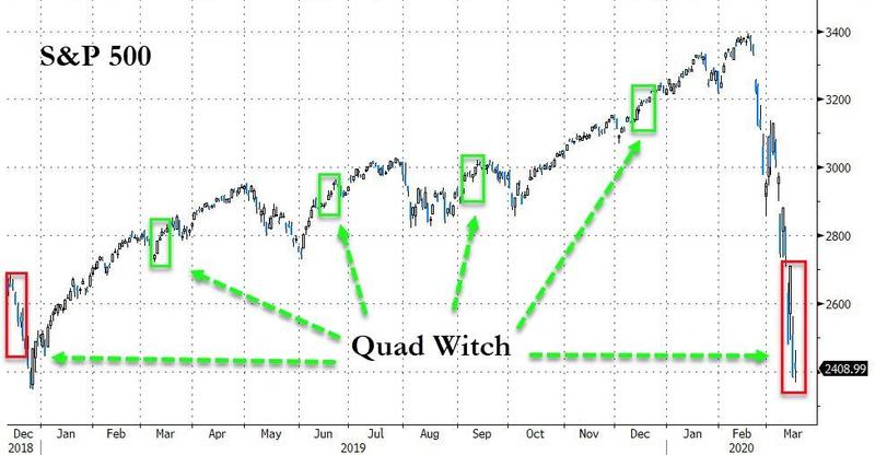 但本次“四巫日”的情况却有所不同,因为当前的市场正因为疫情蔓延而处于极度恐慌之中。为遏制恐慌,美联储紧急降息至零,并携手美国政府开启直升机撒钱模式。