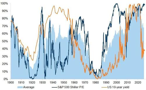 但当下基于主流指标的美股估值普遍显现扩张迹象。尽管相较于美国市场,欧洲和亚洲股市看似估值较低,但若与其自身的历史水平对比可能也难以成立。