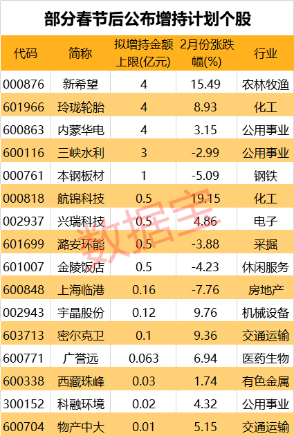 数据宝统计显示,2月份以来发布拟增持计划且正在进行中的公司有29家。