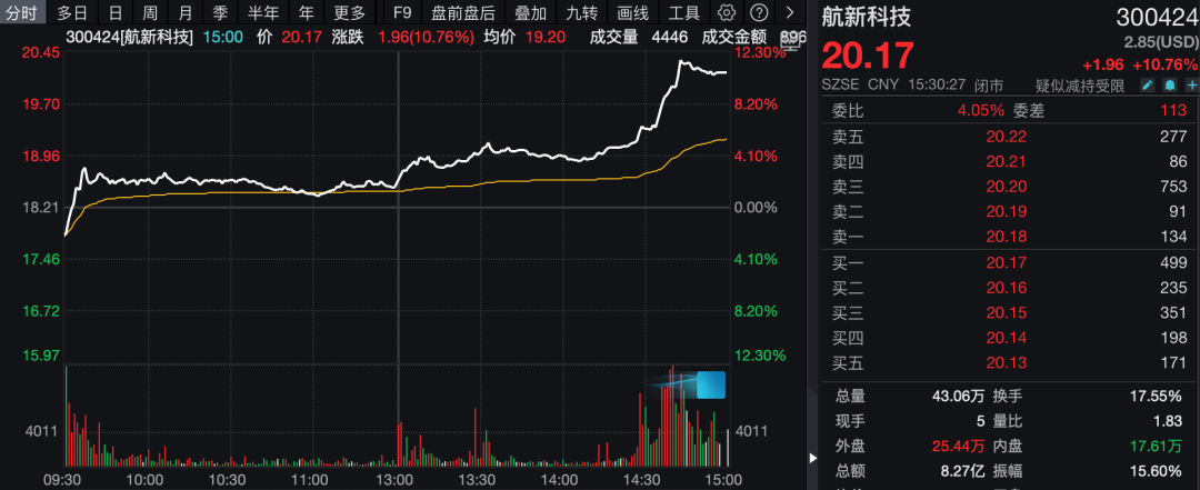 10月27日,航新科技(300424)尾盘拉升,全天大涨超10%。晚间,公司公告称,控股股东广州恒贸创业投资合伙企业(有限合伙)(以下简称“广州恒贸”)正在筹划公司控制权变更相关事宜,可能导致公司控股股东、实际控制人发生变更。