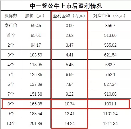 如果上市后8个涨停,则中一签盈利超10万元,且公牛集团市值超1000亿元。