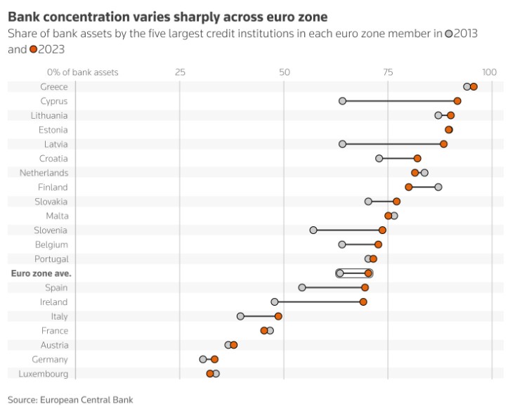 欧元区银行业支离破碎!急需一场“合并浪潮”?