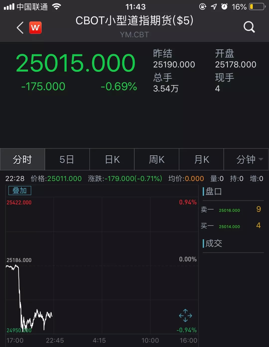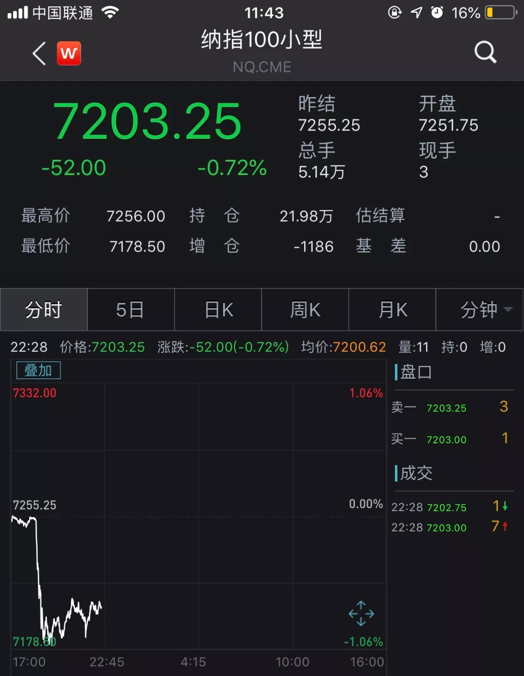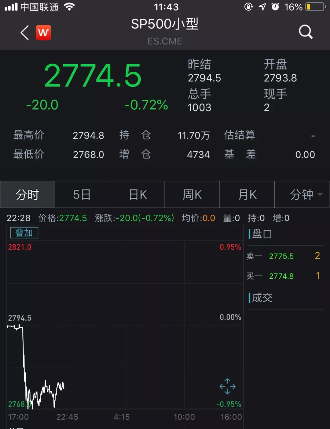 与此同时,美股期指全线下挫,道指期货、标普500指数期货、纳指期货跌幅约在0.7%左右。