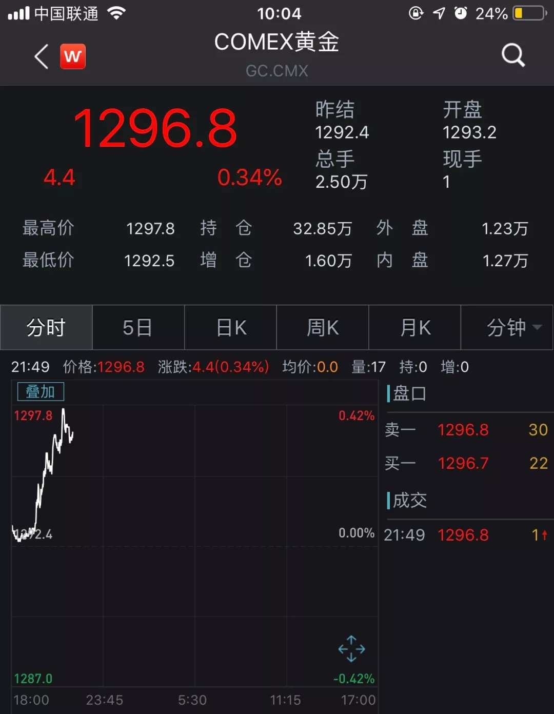 市场避险情绪激增,现货黄金冲上1290关口,目前涨幅在0.3%左右。