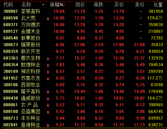 受多个国家爆发蝗灾影响,农业板块今日盘中整体走强,其中种业股表现尤为活跃。截至收盘,荃银高科、北大荒、万向德农、金健米业、新赛股份等涨停。此外,农药板块今日盘中亦集体上扬。