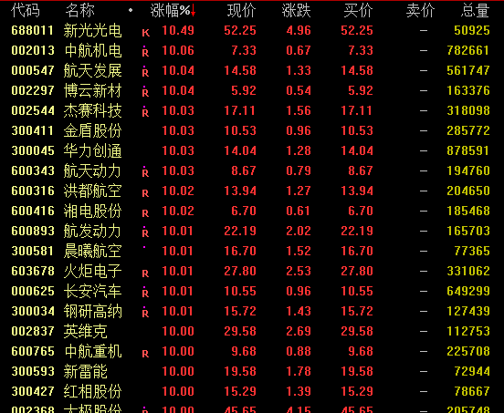 军工板块今日盘中走势强劲,个股掀涨停潮。截至收盘,中航机电、航天发展、博云新材、杰赛科技、金盾股份、华力创通、洪都航空、航发动力、中航重机、航发科技等涨停。