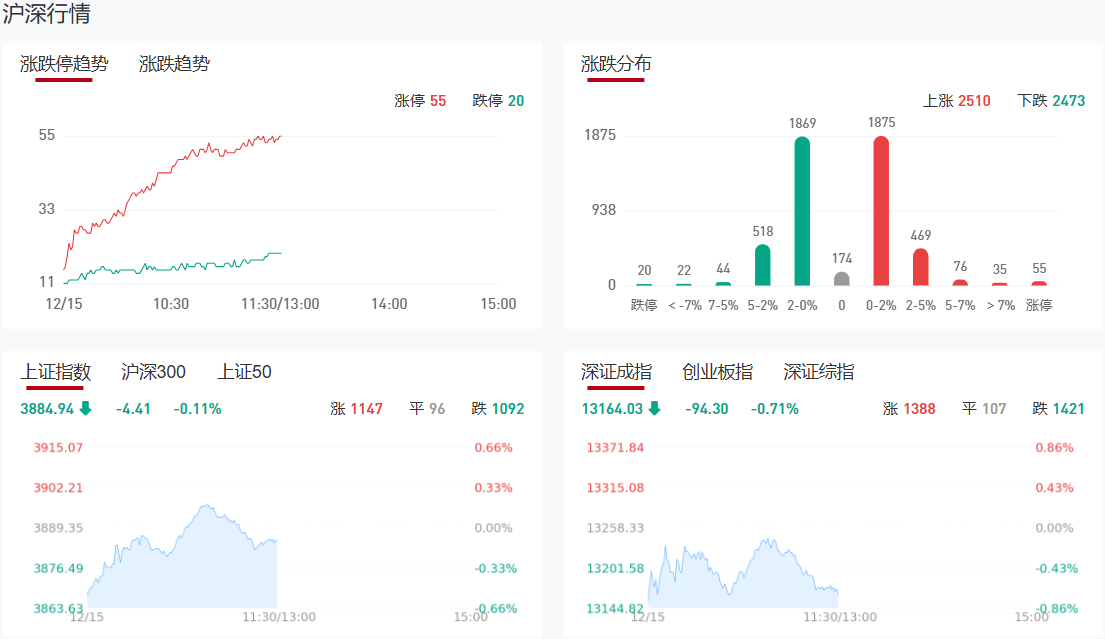 沪指低开高走,盘中一度翻红,创业板指跌超1%。沪深两市半日成交额1.18万亿,较上个交易日缩量529亿。盘面上热点快速轮动,全市场近2700只个股上涨。从板块来看,保险板块大涨,中国平安涨近5%创4年多新高。大消费方向走强,其中乳业概念快速拉升,阳光乳业涨停;白酒概念开盘活跃,皇台酒业涨停;零售表现强势,百大集团3连板。商业航天概念延续活跃,华菱线缆、中超控股双双3连板。下跌方面,算力硬件概念集体下挫,长飞光纤触及跌停。