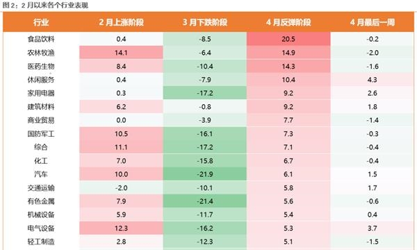 但市场达成一致预期的速度非常惊人,从3月底开始到4月底,食品饮料(21%)、农业(15%)、医药(15%)、休闲服务(10%)、家电(9%)等消费板块,都出现了明显的反弹,同时也大幅跑赢其它板块。