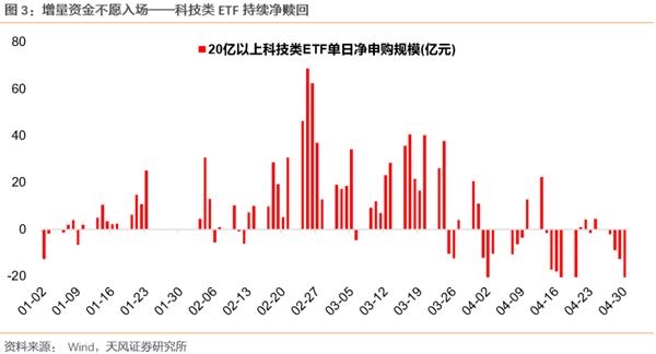 二是,市场很难赚钱,增量资金不愿入场,比如科技类ETF近一个月持续净赎回、公募基金发行较Q1大幅萎缩等,于是当前很多板块和个股要么是区间震荡,要么是短平快的上涨,指数和板块都暂时看不到趋势性的机会。