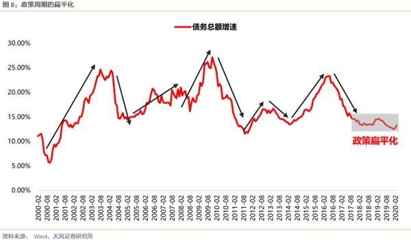 因此,在这样的基调下,政策的调整周期也变得“短平快”,于是导致了经济周期的扁平化。最终以此为逻辑基点的板块轮动逻辑也被弱化。