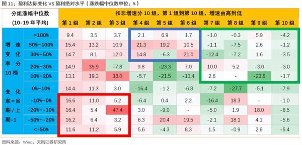(1)如果一类行业增速有所放缓,但仍然是全市场中景气度较高的板块,那就应该继续持有这类行业,后续仍然较大概率取得超额收益。(图11的红色方框中)