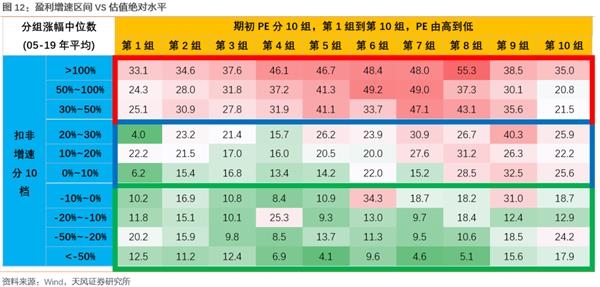 (3)平稳增长的行业或者个股,比如20%增速上下,必须在估值较低时点配置,如果估值太高,则无法获得超额收益。
