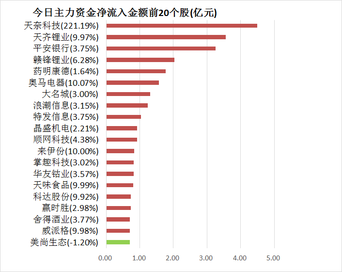 5、天奈科技主力资金净流入4.50亿元居首