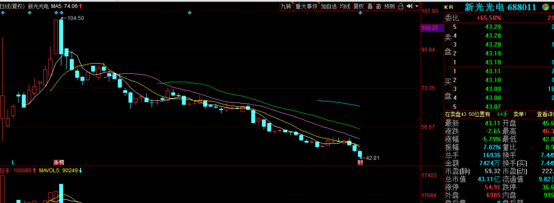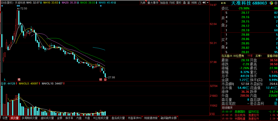 天准科技是科创板最接近破发的新股,有一个10%的跌幅就会破发,比较临近还有昊海生科和新光光电,传音控股和晶丰明源等距离破发也不远。
