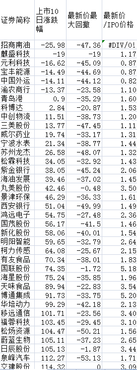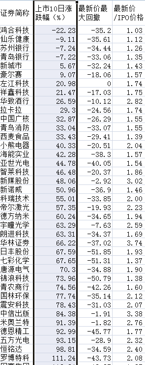 深市今年IPO的58只个股,上市10日涨跌幅中位数为91%,个股连续涨停数量多,新股赚钱效应要比科创板高。最大回撤中位数为33%。出现了一些上市后二级市场表现优秀的个股,比如壹网壹创、三只松鼠等。