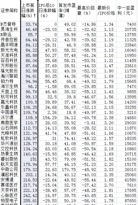 和前面新股相比,最近三个上市首日排名倒数一二三的新股,其实净利润情况并不算特别低,昊海生科首日尾盘卖出还有2万元,这主要是因为三个新股的发行价比较高。但是行情不好,一定要把握卖出机会,首日如果没有卖出昊海生科,第二天再卖出,就只有不到5500元收益了,收益缩水四分之三。至于杰普特这样一签盈利7400元的,以前也曾经出现过,比如海尔生物。