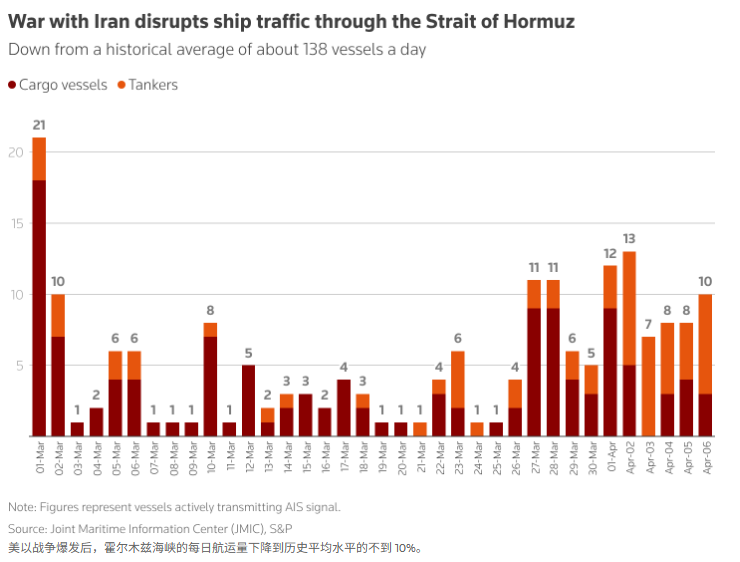 自停火协议签署以来,几乎没有迹象表明霍尔木兹海峡以任何有意义的方式开放,伊朗仍然坚持控制这条重要动脉——这条输送着世界五分之一石油和液化天然气供应的通道——并要求支付通行费才能安全通过。