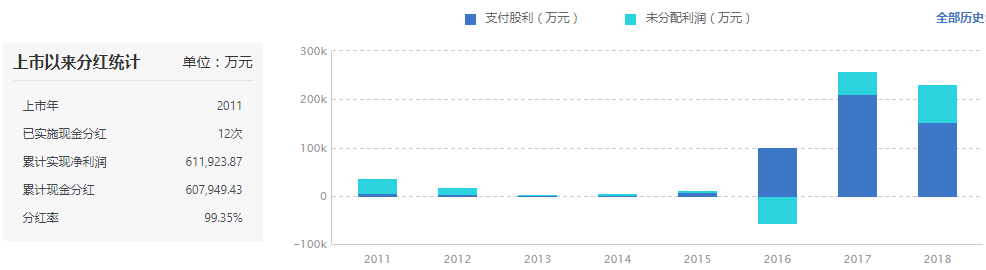 经营一流——高净利率、高ROE、高分红:龙蟒佰利2016年合并龙蟒钛业后,毛利率保持在40%以上,净利率保持在20%以上,远远高于同业公司,公司 2017、2018 年的 ROE 均接近 20%,远高于同业平均水平。公司长期以来保持比较高的分红率,自上市以来,公司累计实现净利润61.2亿元,实施现金分红 12 次,累计现金分红 60.8亿元,分红率高达 99.35%。
