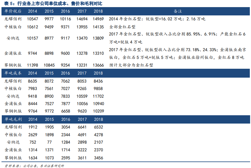 为什么公司可以控制成本呢?因为公司全产业链经营,原料自给率比较高。目前公司主要以硫酸法产能为主,公司自 2016 年收购龙蟒后,原材料、尤其是钛精矿的配套能力大幅提升,其中龙蟒矿冶的 60 万吨钛精矿产能基本能满足德阳和襄阳基地 75%的钛精矿需求;2017 年 3 月 10 日,公司与瑞尔鑫签订了《钛矿采购框架协议》,瑞尔鑫钛精矿产能 20 万吨,自此公司德阳和襄阳基地的钛精矿基本实现完全自给。在上市公司里面,除了家里有大矿的攀钢钒钛,其他公司基本做不到原料自给。