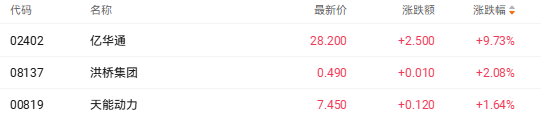 电池股表现活跃,截至收盘,亿华通(02402.HK)涨9.73%、洪桥集团(08137.HK)涨2.08%、天能动力(00819.HK)涨1.64%。