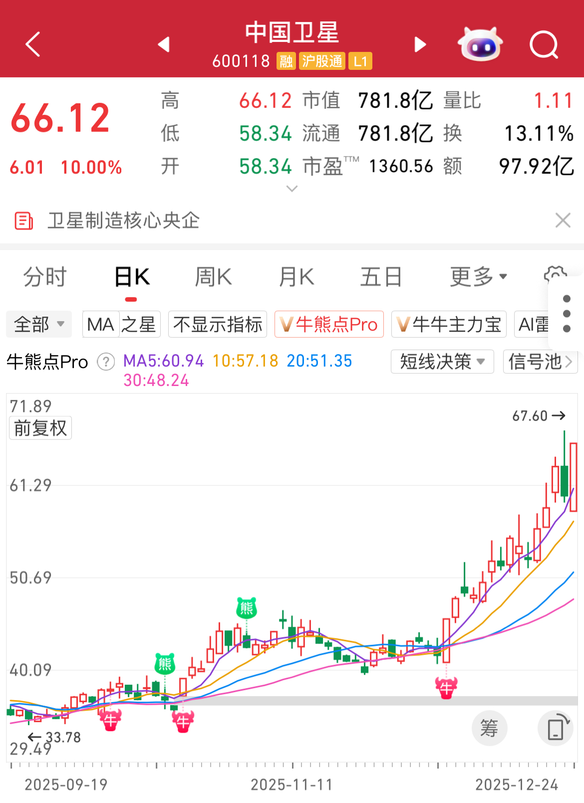小九注:主升行情抓不住?主要还是因为信息差,牛熊点帮您打破信息壁垒,抓主升!中国卫星12月4日出现“牛”抬头信号,随后开启一波浩浩荡荡的主升行情,点击查看详情>>