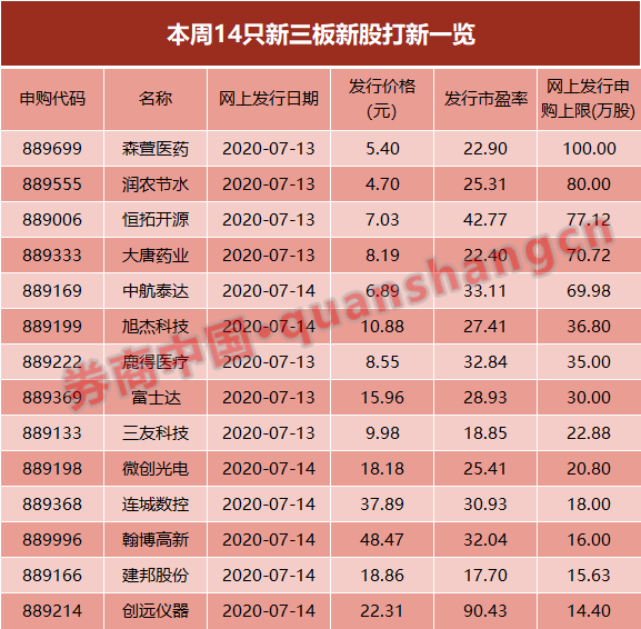 14只新三板个股开放申购