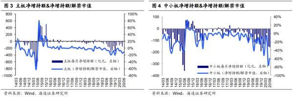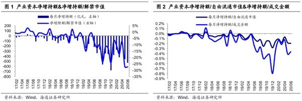 20年6月产业资本二级市场净减持528亿元,17年6月(减持新规实施)以来月均净减持175亿元。2017年5月27日,证监会发布《上市公司股东、董监高减持股份的若干规定》(以下简称减持新规),上交所、深交所也分别发布了相关实施细则,我们研究减持新规实施以来的增减持情况:截止2020年6月30日,从绝对规模看,20年6月产业资本二级市场净减持528.3亿元,而20年5月净减持458.1亿元,2017年6月以来产业资本月均净减持174.8亿元。从相对规模看,20年6月产业资本净增减持额/解禁市值为-27.29%,2017年6月以来均值为-7.08%;净增减持额/成交金额为-0.37%(成交金额为全A股成交额,后同),2017年6月以来均值为-0.17%;净增减持额/自由流通市值为-0.19%,2017年6月以来均值为-0.08%。从板块看,产业资本在主板净减持135.8亿元,中小板净减持159.3亿元,创业板净减持233.2亿元,净增减持额/解禁市值分别为-12.02%、-59.71%、-43.24%,可见中小板减持力度最大。从个股来看,6月邮储银行增持规模最大,增持额14.62亿元,增持金额/自由流通市值为8.4%,中国建筑减持规模最大,减持额为43.41亿元,减持金额/自由流通市值为4.81%。对产业资本每年净增减持额进行统计,19年净减持额达到3294.9亿元,而18年和17年全年分别为794.7亿元、223.1亿元。