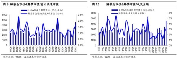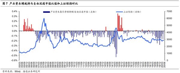 借鉴创业板首批上市股,这次科创板解禁潮对市场影响有限。回顾创业板第一批上市公司的发展历程,28家创业板公司于2009年10月30日集中在深交所挂牌上市。在一年后的2010年11月1日,第一批上市的创业板公司除宝德股份受到发行前所有股东三年限售的限制外,其他27家公司都在11月1日迎来大额解禁。我们对解禁后的市场情况进行统计分析:第一批创业板上市公司在迎来解禁后的首周涨跌幅均值为-1.76%,首月涨跌幅均值为6.44%。从对指数整体的影响来看,创业板指首周涨跌幅为0.72%,首月涨跌幅为10.99%;中小板指首周涨跌幅为3.13%,首月涨跌幅为-0.07%。从A股历史上的解禁减持对市场的影响来看,产业资本持有A股到期解禁的高峰期对行情的影响是有限的。我们认为原因有二:第一,解禁额并不代表产业资本减持额,还要考虑限售股解禁后减持的约束比例及市场行情对产业资本增减持的影响。统计首批创业板上市公司大额解禁后的首月增减持情况,创业板实际增减持额为-13.8亿,仅占当月解禁额的0.1%左右。进一步统计得到全部A股在减持新规实施以来和2019年全年的净减持额/解禁市值均值分别在5%和10%左右,一般而言实际减持占解禁额的比例较小。第二,减持额大小与短期涨跌关系不大。参照上文,长期来看产业资本增减持额可作为判断市场大拐点的信号,而从短期来看产业资本波动较频繁,对市场行情并没有很大影响。以2019年行情为例,9月和12月产业资本分别净减持561亿元和541亿元左右,而上证综指在9月和12月的涨跌幅分别为0.66%和4.6%,并未出现明显下跌反而上涨,而在减持额仅为19亿元左右的5月,上证综指大跌5.8%。