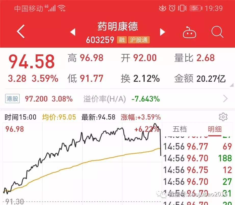虽然总体来看北上资金尾盘竞价阶段参与热情高涨,但不同股票股价走势出现分化明显,上述药明康德、泰格医药则是被资金抛售对象之一。数据显示,沪深股通标的股尾盘集合竞价阶段有389股下跌,44股跌幅超过1%,多只近期处于历史高点附近的热门股在列。