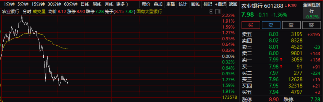 风格转换的速度都在加快。早盘走势强劲的农业银行在上午10点过后,突然大跳水,并带领银行股整体冲高回落,这在一定程度上压制了红利资产的表现。