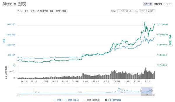 比特币近期以一路飙升的涨势,重回公众视野。7月10日上午,比特币重返13000美元,再创两周内的新高;比特币总市值为2308亿美元,升至全球加密市场总市值的64.8%,这一比例也刷新了自2017年4月以来新高。
