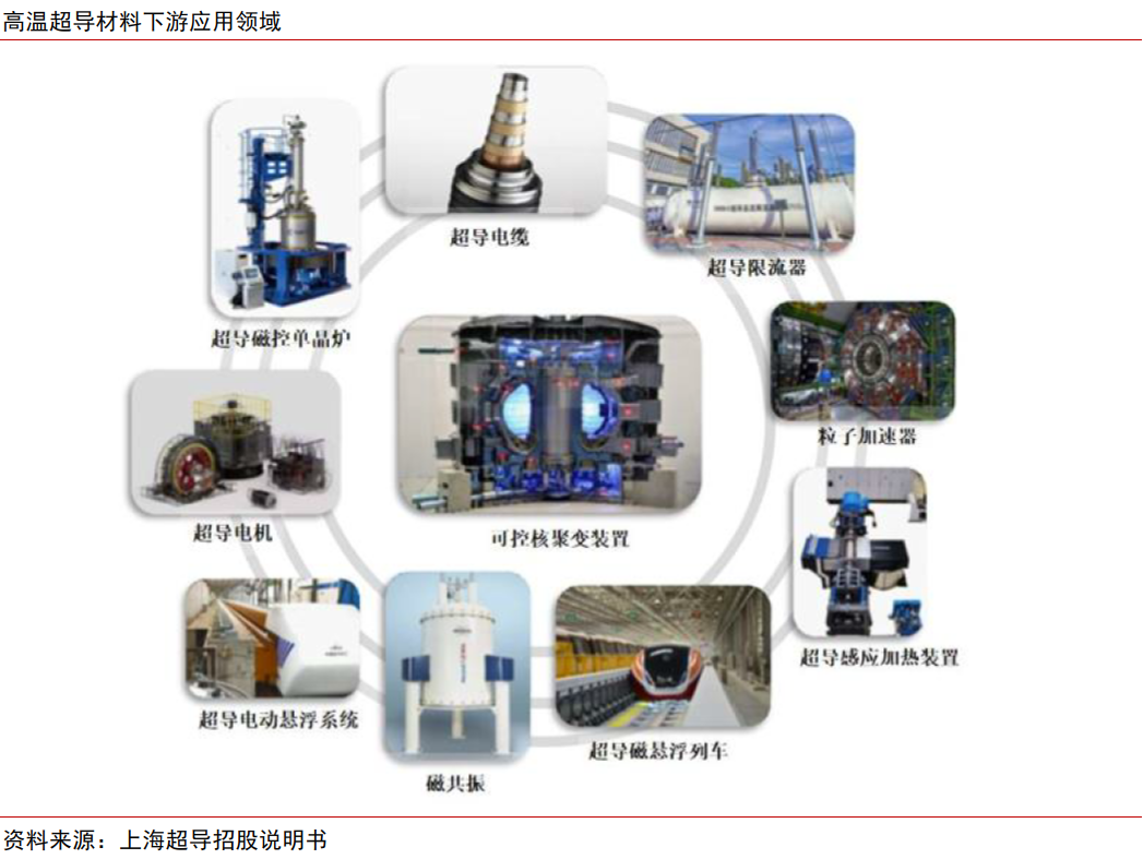2)高温超导磁体——磁体作为目前高温超导带材占据半壁江山的应用下游,后续有望借助可控核聚变、超导感应加热、超导磁控单晶炉、超导磁悬浮与电磁推进等下游产业化进展提速,而持续迎来订单利好催化。