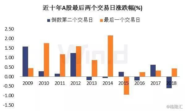 近十年大数据显示,上证指数每年最后两个交易日都会有一次变盘走势,尤其从2013年开始变得更加明显。其中,2013、2014、2016和2018年是先跌后涨,2015年为先涨后跌;2017年虽然是连涨,但后一个交易日明显动力不足。