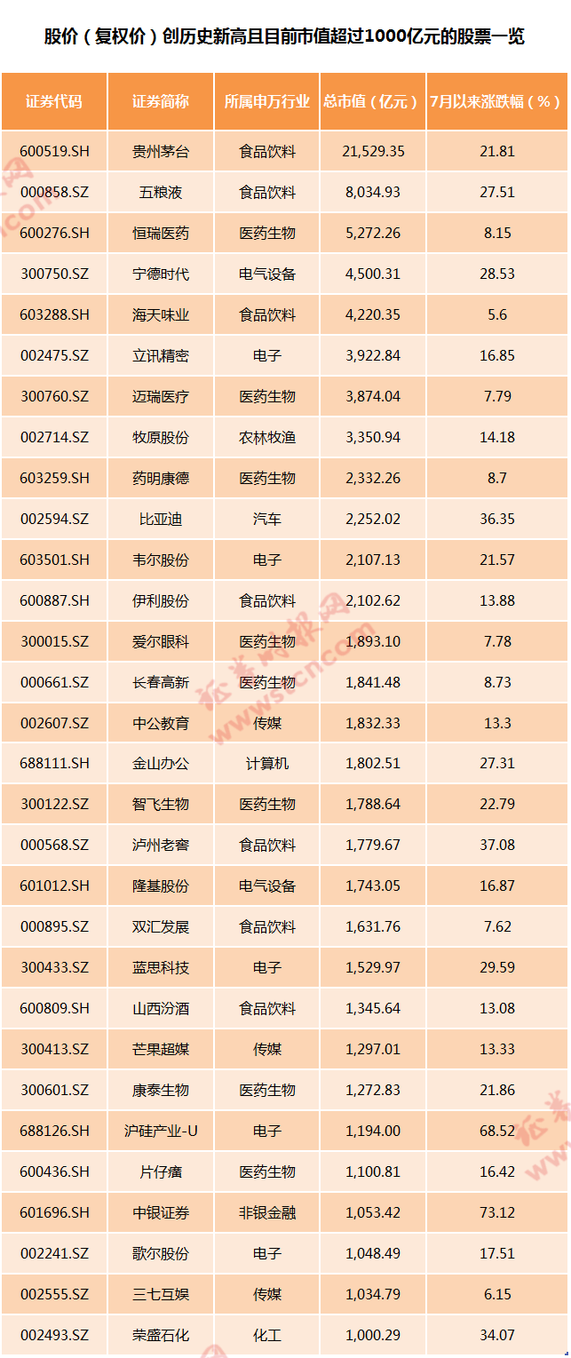 在一片上涨声中,不少股票迭创新高。