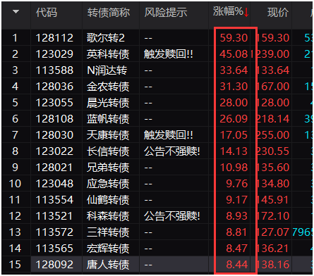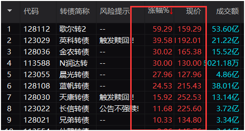 在今天行情再次现“柳暗花明”之际,兼具债券属性和股票属性的可转债也上演疯狂一幕,出现多只单日暴涨超过30%的可转债。
