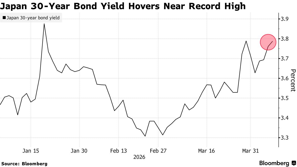 日本是最容易受到中东局势影响的主要经济体之一,其超过90%的原油进口来自该地区。目前日本30年期国债收益率徘徊在约3.76%,接近今年1月触及的历史高点,这凸显出市场对油价上涨推动通胀走高的担忧。