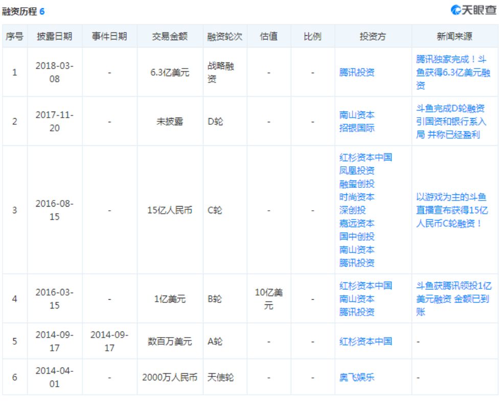 资料显示,上市之前,斗鱼先后有6轮融资,成立伊始便获得2000万的天使轮融资,随后1亿美元、15亿人民币、6.3亿美元等融资,可以说是不差钱。